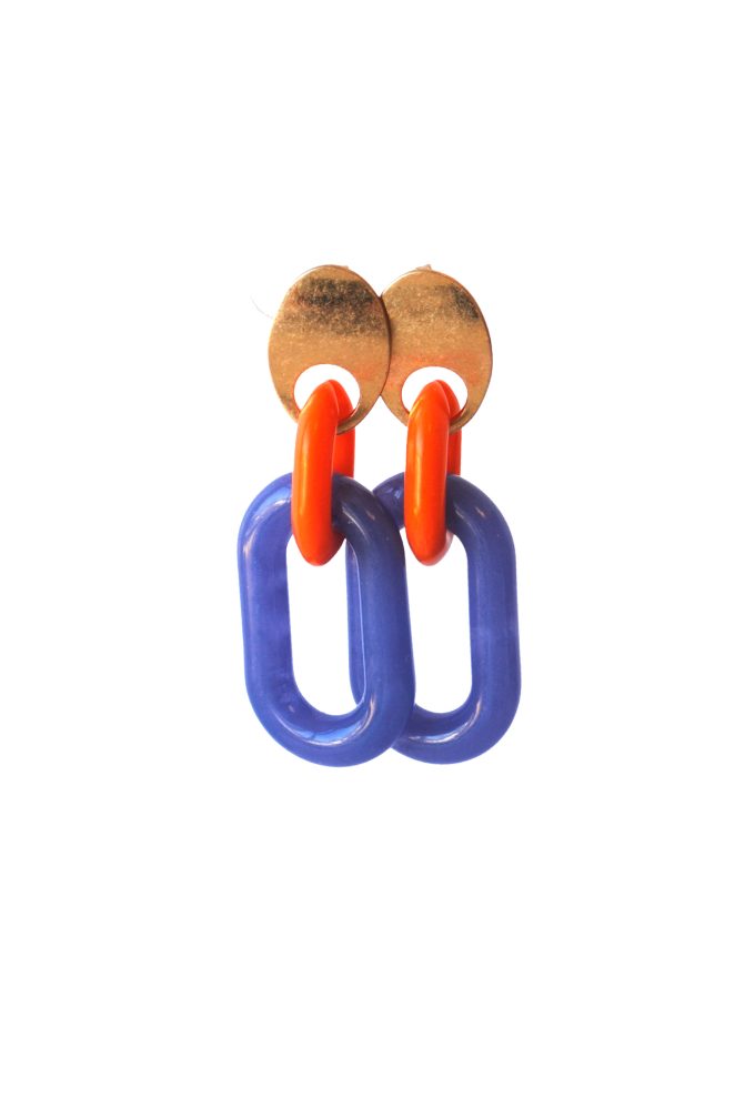 Oorbellen schakel oranje/paars en oorsteker vintage gold