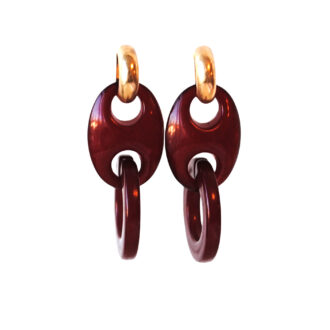 Ellips oorbellen goldplated of verzilverd met hanger resin bordeauxrood gemeleerd