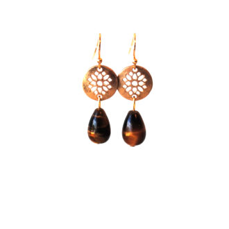 Oorbellen filigrain rhodium (zilverkleur) of goldplated en cat eye oranje