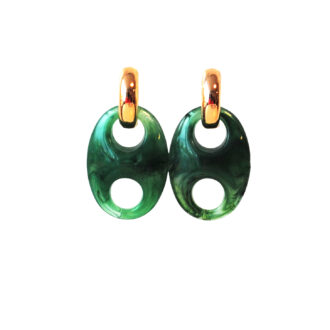 Ellips oorbellen goldplated of verzilverd met hanger resin donker groen gemeleerd